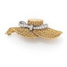 Broche "chapeau de paille" en fils d'or jaune 750‰ tressés, agrémenté d'un ruban noué en or gris serti de diamants. Années 1960 Poids brut : 10,4 g