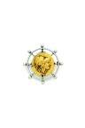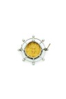 Broche en platine (950‰) ) à décor rayonnant ornée d'une pièce de monnaie antique en or jaune 18k (750‰), un statère d’Alexandre III le Grand (336-323), épingle en or 14k