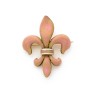 Broche "Fleur de Lys" en or jaune 18k (750‰) ornée d'émail rose poudré translucide sur fond guilloché et filets d'émail blanc