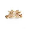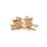 Broche "Oiseaux sur une branche" en or jaune 14k (585‰) granité et cabochons d'agate, un diamant serti clos pour figurer l'oeil Dime...