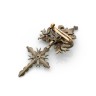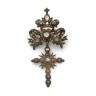 Broche ornement en argent et diamants taillés en rose en forme de noeud de ruban couronné retenant en pampille une croix, épingle en métal doré Travail de la fin du XVIIIe siècle Poids brut : 14,9 g