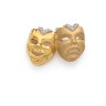 Broche/Pendentif en or jaune 750‰ à décor de deux masques de théâtre (la comédie et la tragédie), l'un lisse l'autre satiné agrémentés de diamants.