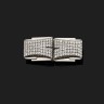 Broche pouvant former deux clips de revers en or gris 18 k (750°/oo) et platine, de forme géométrique, ornée de deux pavages de diamants ronds de taille brillant. (Manque une épingle). Travail français, vers 1930. Dimensions : 5 x 2 cm Poids brut : 27,4 g