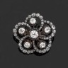 Broche "rosace" en argent à décor d'entrelacs entièrement sertie de diamants ronds et coussin de taille ancienne, six d'entre eux plus importants.
