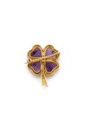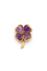 Broche "Trèfle à quatre feuilles" en or jaune 18k (750‰) finement ciselé rehaussée d'améthystes gravées