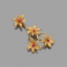 Broche volute en or jaune 18k (750‰) à décor de fleurs ornées au centre de pierres rouges. Dimensions : 7 x 3,7 cm Poids brut : 14,7 g