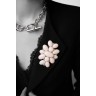 Broche/pendentif "Grappe" en or blanc 18k (750‰), ornée de cabochons de corail peau d'ange et de diamants ronds et triangle