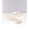 Bruno Gambone (1936-2021) Ensemble de trois plats - Édition limitée Grès Signés 'Gambone Italy' Date de création: 1985 H 6 × Ø 16,5 cm H 7,5 × Ø 23 cm H 9 × Ø 29,5 cm