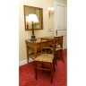 Bureau, 75x110x59 cm, miroir, 75x69 cm, deux chaises, 85x40x35 cm et lampe H 80 cm Mesa escritorio, espejo, 2 sillas y lámpara de sobremesa