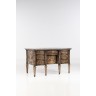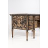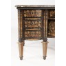 Bureau Mazarin à huit pieds en marqueterie de fleurs sur fond d'ébène, ouvrant à sept tiroirs et un guichet, à décor de vase de fleurs dans un entourage de feuillages et fleurs, reposant sur des pieds en gaine ; on y joint un plateau de marbre rouge des Flandres (associé).
