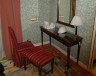 Bureau, miroir, lampe, chaise, banquette et petite table rectangulaire
