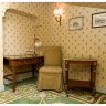 Bureau plat 70x110x59 cm fauteuil à dossier droit 94x50x40 cm petite table rectangulaire et lampe h 60 cm