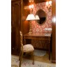 Bureau plat 74x96x66 cm, chaise 97x42x42 cm, lampe de table H 78 cm et miroir Escritorio, espejo, lampara de sobremesa y silla dorada