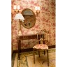 Bureau plat 76x96x55 cm, chaise, 97x42x42 cm, miroir 86x70 cm et lampe H 78 cm Mesa escritorio, espejo oval, lampara de sobremesa y silla dorada