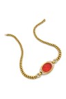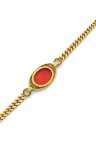 Collier en or jaune 18k (750‰) à maillons gourmette retenant une intaille sur cornaline titrée au dos " Fillotete Curato Da Macaone - 1° Quarto XIXe sec" entourée de diamants taille brillant