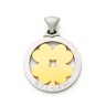 BVLGARI Pendentif en acier orné d'un trèfle à quatre feuilles en or jaune 18k (750‰) Signé, gravé 750, poinçonné Dimensions : 6 x 4,3 cm Poids brut : 26,4 g