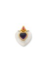 Pendentif articulé en or jaune 18k (750‰) en forme de coeur en porcelaine blanche, rehaussé d'un cabochon d'améthyste en forme de coeur