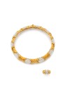 Choker flexible en or jaune 18k (750‰) à motifs éventail sertis de perles de culture