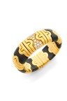 Bracelet jonc flexible composé de maillons d'or jaune 18k (750‰) et d'hématite alternés, celui du centre rehaussé de diamants taille brillant