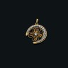CARTIER. Pendentif "fer à cheval" en or jaune 750‰, serti d'une ligne de diamants ronds de taille brillant en chute, l'intérieur orné d'un trèfle à quatre feuilles en fils d'or torsadés, serti au centre d'un petit diamant rond, entre quatre citrines de forme ovale. Signé et numéroté. Poids brut : 14 g
