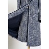 CHANEL. Ensemble manteau, jupe et ceinture assortie en lainage bleu marine et blanc.