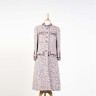 CHANEL. Manteau et jupe assortie en lainage dans les tons violet- rose sur fond blanc.
