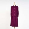 CHANEL. Ensemble jupe plissée et veste à motifs noirs sur fond rose indien.