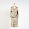 CHANEL. Tailleur jupe à larges plis plats en lainage rose et vert.