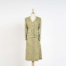 CHANEL. Tailleur jupe en lainage vert et rose.