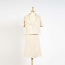 CHANEL. Ensemble jupe et corsage à manches courtes en lainage crème.