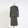 CHANEL. Tailleur jupe en lainage vert moucheté beige et marron.