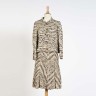 CHANEL. Tailleur jupe en lainage bouclette beige-marron et beige.