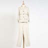 CHANEL. Ensemble trois pièces beige comprenant jupe, pantalon et veste assortie.