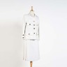 CHANEL. Tailleur jupe portefeuille en lin blanc et veste à quatre poches.