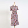 CHANEL. Robe en soie imprimée de fleurs roses, rouges et marron sur fond blanc.