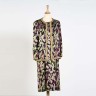 CHANEL. Robe en soie brochée or sur fond noir à décor de fleurs roses.