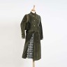 CHANEL. Manteau en daim vert bronze et jupe en laine assortie à la bordure de la manche. On y joint une jupe en daim vert par ALEXANDRE et un sac à main.