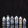 Ensemble de six flacons tabatières en porcelaine à décor émaillé en bleu et rouge de dragons et personnages.