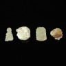 CHINE - XIXe siècle Boucle de ceinture en forme de pêche, grenade, et citron digité "sanduo", les trois abondances, et trois pendentifs en néphrite céladon. L.7,5 cm