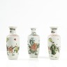 CHINE - XIXe siècleTrois vases de forme balustre dont une paire en porcelaine décorée en émaux polychromes dans le style de la famil...