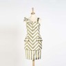 COURRÈGES. Années 1970. Deux robes, une couleur orangé en jersey (tâches), une à décor géometrique en lin et un ensemble (jupe et bustier) en soie. Taille : 38.