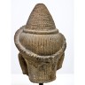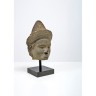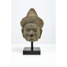 Tête de Shiva en grès gris, les yeux ouverts, la coiffe finement ciselée de fleurs et surmonté de l'ushnisha conique. (Eclats, nez refait). H 29 cm (nez refait)
