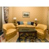 Sofa, pareja de sillones, mesa de centro tapa marmol, velador y pareja de lámparas de sobremesa