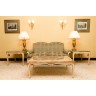 Sofa, pareja de mesillas tapa marmol, mesa de centro tapa mármol y pareja de lámparas de sobremesa