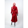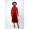 Caroline HERRERA ROBE en taffetas polyester cerise, jupe plissée soleil, ceinture