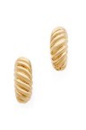 Paire de clips d'oreilles en or jaune 18k (750‰) à godrons Signés, numérotés 952732, gravés 750 Hauteur : 2 cm Poids : 12,8 g Exempté de Garantie