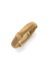 Années 1945-50 Bracelet jonc en or 18k (750‰) de trois tons à maillons tubogaz orné de trois motifs godronnés Signé, numéroté 716100, gravé 750 Longueur : 17,8 cm Poids : 41,3 g Pochette en suédine signée