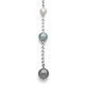 Collier en or gris 18k (750‰) en forme de chaîne à maillons forçat se terminant par une chute de trois perles de culture, une blanche et deux grises