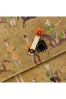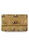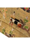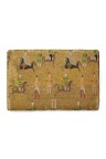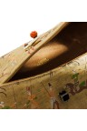 Pochette du soir rectangulaire en soie beige doré damassée à motifs polychromes d'inspiration persane représentant des joueurs de Polo, l'intérieur en daim