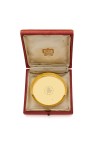 Vide-poche "Bonheur" en or jaune 18k (750‰) orné au centre de l'idéogramme chinois "Bonheur" en émail blanc
